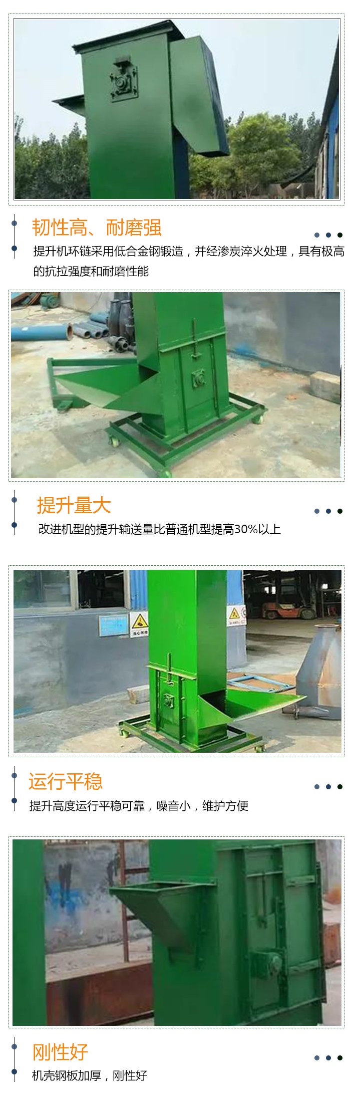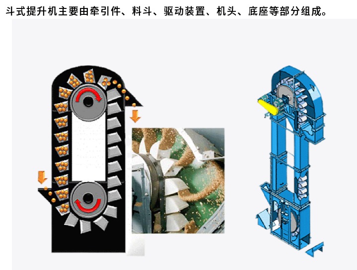 環(huán)鏈斗式提升機主要是依靠固定在鏈條上的料斗,將均勻流入尾部進料口的物料從斗式提升機尾部不間斷地提升到斗式提升機頭部,并 然后從機頭出口卸下物料,完成整個物料提升過程。適合輸送堆積密度小于1.5t/m³易于掏取的粉狀、粒狀、小塊狀的低磨琢性物料 ,如:煤、水泥、碎石、砂子、化肥等,比普通機型提高30%以上。